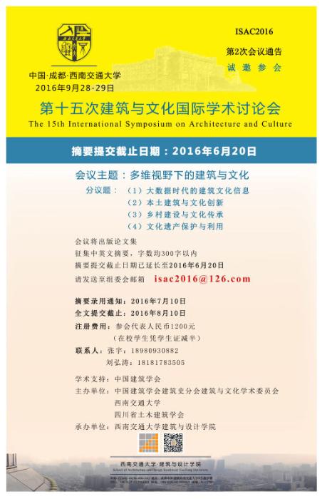【学术会议通知】第十五次建筑与文化国际学术讨论会