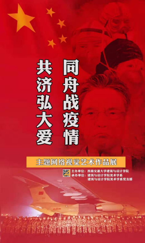 自新型冠状病毒引发的肺炎疫情爆发以来,人人心系武汉、心系湖北!遵照习近平总书记对做好疫情防控工作的指示精神,全国各地的医护人员投身一线抗击疫情,为保障人民群众的生命健康作出了艰苦的努力和无私奉献,全国人民上下一心,共克时艰,坚决打赢疫情防控阻击战。各地单位和个人积极响应,发扬众志成城之精神。在此期间,涌现出了一批可歌可泣的先进人物和动人事迹,感人至深。 值此防控疫情的关键时刻,西南交通大学建筑与设计学院组织全院师生以书画、宣传画、插图等艺术形式创作了一批以“同舟战疫情、共济弘大爱”为主题的视觉艺术作品(收到投稿,我们会陆续选登),借此以艺术的力量鼓舞人们斗志,坚定必胜信心,为取得抗击新型冠状病毒性肺炎疫情的最终胜利贡献力量! 我们建筑与设计学院师生更应认真贯彻落实习近平总书记重要讲话、重要指示精神,和全国人民一起团结一心,共克时艰。请拿起画笔讴歌战斗在疫区前线的最美中国人,描绘我们这个时代的精神图谱。