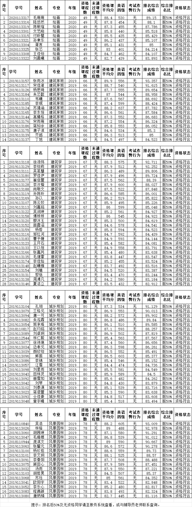 根据《西南交通大学推荐优秀应届本科毕业生免试攻读研究生实施办法》相关规定,现将免研资格审核情况公示如下(详见附件),若有异议,请于9月18日17:00点前至辅导员老师处反映,恕不接受匿名反映。
