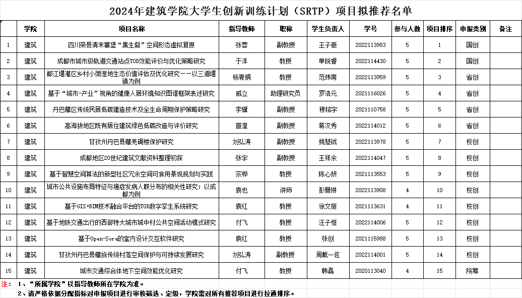 根据有关要求,现将2024年伟德体育官网大学生创新训练计划(SRTP)项目拟推荐名单,公布如下(详见附件),请拟推荐团队学生做好相关工作。