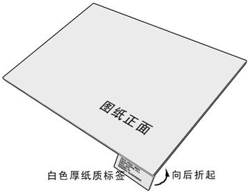 在图纸每一张从正面看的右下角加贴一张白色厚纸标签(确保其牢固附着),在其正面(宽×高=120mm×50mm)以印刷体写明(或打印)如下内容,