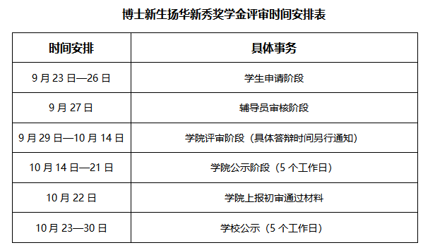 申请博士新生扬华新秀奖学金同学需参与学院层面答辩,请各申请人做好答辩准备;具体答辩安排后续通知。