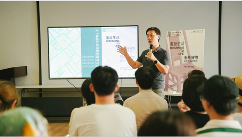 伟德体育官网风景园林系教师李翔在展览开幕式分享设计和展出项目的理念
