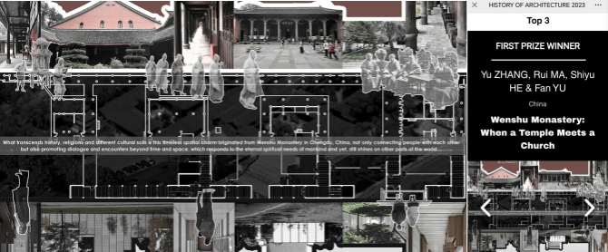Archiol网站2019年成立以来,在组织国际建筑竞赛方面声名鹤起,频频吸引全世界的青年建筑学子参赛。本次国际论文竞赛得奖,不仅体现了我院师生团队的专业能力,同时也是用论文讲好中国故事,让更多国际友人了解文殊院,了解成都。
