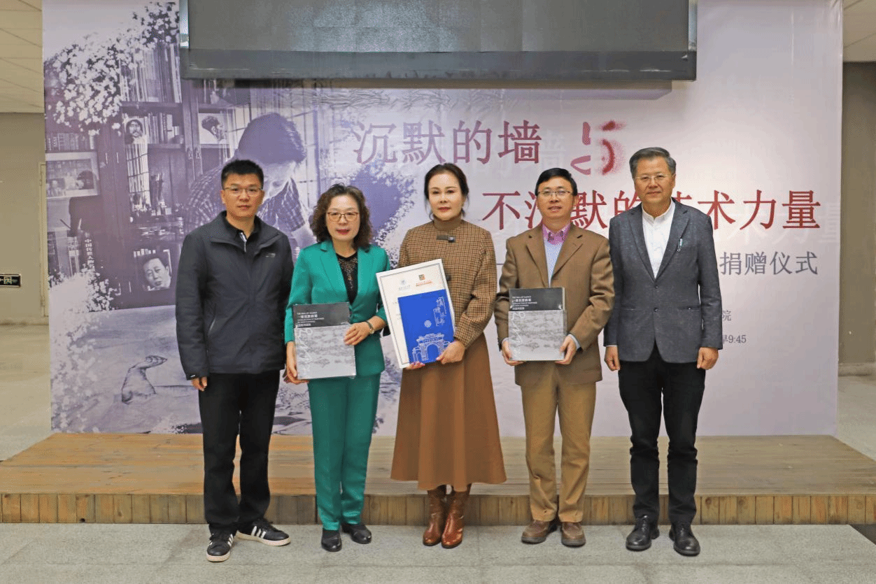 11月17日,校图书馆与伟德体育官网联合主办的我校知名校友,著名中国画家沈道鸿先生“沉默的墙与不沉默的艺术力量”画集捐赠仪式在伟德体育官网A100报告厅成功举办。 沈道鸿先生夫人、画集主编王娅莺,画集的责任编辑梁合,生前好友张自启、罗宗建,校图书馆党总支书记郑江,馆长郭春生,伟德体育官网党委书胡伟,执行院长沈中伟及相关单位领导、师生代表参加活动。捐赠仪式由校图书馆郑江书记主持。
