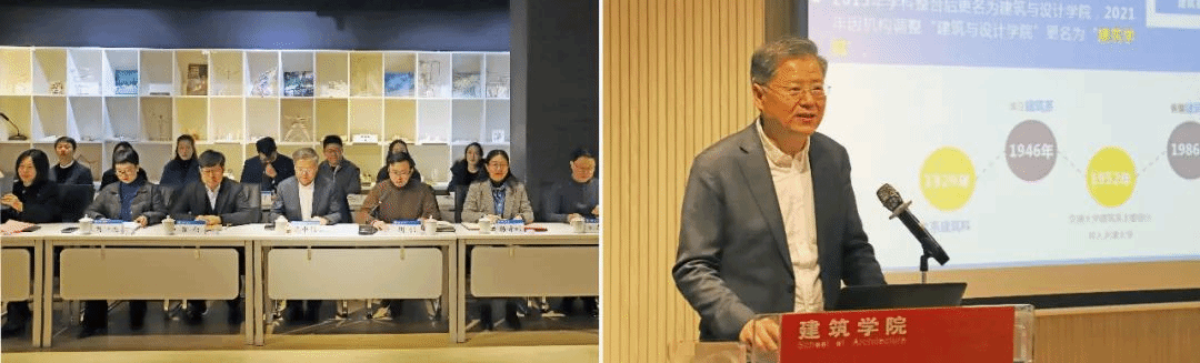 沈中伟代表伟德体育官网对闫学东校长一行到学院指导工作表示欢迎,并以“特色发展,主动转型,提升伟德体育官网整体办学水平”为题,围绕学院概况、主要工作、对照问题、未来展望四个主要方面进行了工作汇报。沈中伟在汇报中回顾了学院悠久的办学历史和办学成就。他分别从人才队伍建设、学科学位点建设、教育教学、科学研究、平台建设、国际化工作、党建工作、学生工作、就业工作九个方面汇报了工作情况与成效,同时针对学科建设情况进行了对比分析,梳理了学科发展的明显短板和相对不足。对于学院未来发展,沈中伟从战略、定位、目标、举措、阶段、路径等方面进行了展望。伟德体育官网未来将按照“短期扬长避短塑造学术声誉,取长补短打造学科实力。转型期抓好学科,提升位次,增加博士点,集聚优秀青年人才,提升科研团队水平;抓好博士后流动站建设,科研先行,设计协同,提升教学。中期在交通领域、地域性等领域巩固领先优势,深度交叉双碳、智慧、韧性研究领域形成更为巩固的学术高地。学科建设水平稳步提升。长期要在建筑类学科的主干方向形成高原,在建筑学科的特色方向形成高峰。学科排名争取进入A类”的“三步走”的规划,走内涵式高质量发展道路。