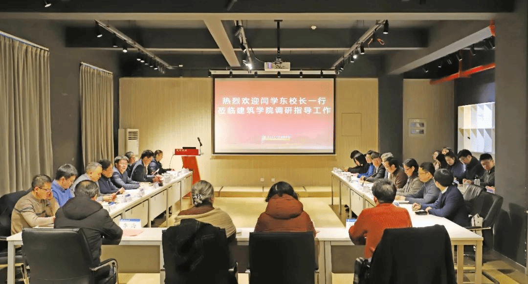 在听取学院工作报告后,闫学东校长作总结讲话。伟德体育官网优美整洁、充满艺术气息的学习环境和学生在专业教室认真学习的场景,引起了他对大学生活的美好回忆。闫学东在讲话中充分肯定了伟德体育官网办学历史悠久、文化底蕴深厚,在人才培养、专业建设、学科发展方面体系完备,以及在学生培养和青年人才储备方面取得的显著成果。随后,他从四个方面指明了学院下一步的发展思路:一是要找准内涵式发展方向,落实立德树人根本任务,提升人才培养质量,以扎实的成果支持学校“双一流”建设。二是要进一步突出学科特点,做到“顶天”与“立地”相结合。“顶天”就是要争取重大、重点、有展示度的科研项目,取得原创性成果,在基础学术领域占据引领地位;“立地”就是要发挥应用型学科的优势,做好有组织的科研、工作室、专业团队教育教学等方面的工作,在交通单体建筑、城市区域专项规划、TOD设计等领域创作一批标志性作品,服务地方经济社会发展。三是要进一步加强特色发展。学院要充分利用好学校“交通”这一特色,用系统性思维打造新的范式,努力在智能、双碳、巴蜀文化传承、生态文明等领域找到发展方向,抢占先机。四是要持续做好国际化工作,加快推进建筑类专业中外合作办学项目,以此反哺学科评估、学生深造、资源保障。最后,闫学东鼓励学院全体师生和大家一起为学校的发展共同努力,为学校事业、学院事业再上新台阶而拼搏奋斗。