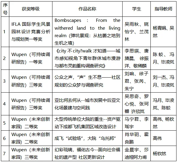近年来,伟德体育官网不断提升师生专业素养和创新能力,专业教育水平在国内外建筑教育界的地位和影响力逐步提升。在金秋时节的九月,伟德体育官网学子在国内外竞赛中表现优异,捷报频传。在IFLA国际学生风景园林设计竞赛中荣获分析与规划类一等奖。这是我校首次在风景园林专业最高等级国际赛事中获得一等奖,实现了历史性的突破。同时在2024WUPENiCity学生作业国际竞赛中荣获一等奖1项、二等奖2项、三等奖3项、提名奖8项的好成绩。