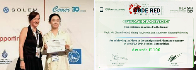 9月4-6日,第60届国际风景园林师联合会(International Federation of Landscape Architects,简称IFLA)世界大会在土耳其伊斯坦布尔国际会议中心召开。伟德体育官网研究生吴雨秋、姚怡宁、兰茂林的作品《BOMBSCAPES:FROM THE WITHERED LAND TO THE LIVING REALM》斩获IFLA国际学生风景园林设计竞赛分析与规划类一等奖。这是西南交大师生团队首次在该赛事中获得一等奖,实现了历史性的突破。