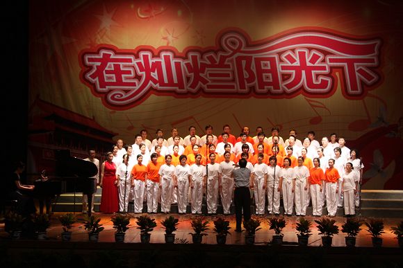 2009月9日29日下午2点30分,由西南交通大学工会主办的校教职工红歌会——“在灿烂的阳光下”,如期在九里堤校区大学生会堂举行。参赛的教职员工们精神饱满,神采飞扬,脸上洋溢着节日的笑容。比赛场内红旗招展,歌声嘹亮,气势雄浑。一首首熟悉的旋律,伴随音乐的节拍,经老师们饱含深情的演绎,那些峥嵘岁月的甘甜,在记忆中慢慢醒来,激起人们心中强烈的爱国热情。
