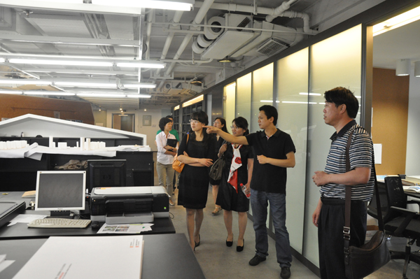 交流会后,学院领导还参观了事务所设计室、创意中心等业务部门,亲切看望了学院毕业学生。