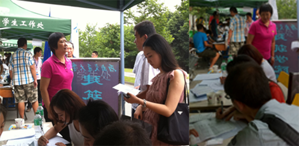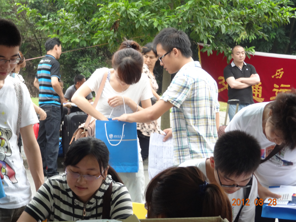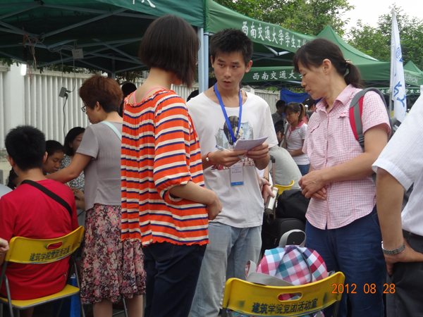 8月28日,伟德体育官网2012级新生迎接工作进入第二天,负责迎新的同学们早上6:00便守候在了学院迎新点,耐心的等待着每一位来报到的同学。