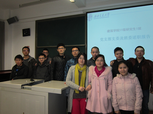 伟德体育官网2011级研究生1班共计22人,其中党支部与班委成员共计10名,成为班级建设的骨干力量。班干部是班级建设与管理的枢纽,沟通各辅导老师的桥梁。办事高效、踏实负责的班干部成员在优秀班集体的建设过程中起着至关重要的作用。班级实行班委问责制度,明确班委责任,促进有效工作,每学期伊始,班级将召开班委述职报告,检查与督促班干部工作情况,促进班委各司其职,为班级建设增砖添瓦,并在班委述职报告后讨论制定班级学期计划,各个班委分别负责相关类型的班级活动,促进班级良好的学术氛围,丰富大家的课外生活;班级每月定期召开班会,及时了解班级同学的状况,同时积极传达学院班级工作指示;同时在班级管理中为方便上传下达,加强班级通讯设施建设(QQ群、飞信、邮箱、手机通讯等)。为努力提高优秀班干部的思想觉悟,发挥其先进带头作用,该班党支部组织了学习“胡锦涛总书记七一重要讲话”征文活动、关注老年人生活状况,探求新型养老建筑等一系列活动。班级还开展明细班级财务管理制度建设,每学期定期将班级收支情况公布于班级QQ群,接受同学们的监督。这些管理办法的开展有效地提高了班级工作进行的效率并加强了对班干部的监督和管理。