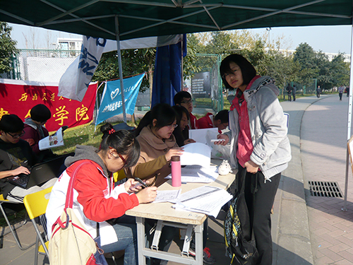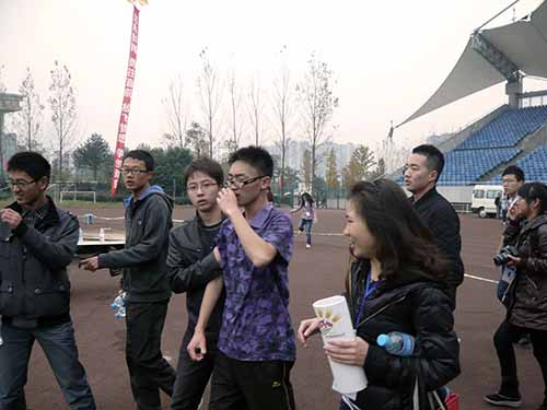 伟德体育官网在体育场外设立了大本营,一些青协的志愿者负责在此值班。比赛期间,志愿者们在大本营为参赛选手准备了热水、葡萄糖、香蕉等食品,并及时的记录参赛选手的比赛成绩。志愿者们最主要的任务就是为有需要的同学提供帮助。志愿者们那句“有啥需要尽管说,我们一定尽全力帮你”温暖着每个同学的心。同时志愿者也负责提醒那些即将开始比赛的同学,并引导他们进入比赛入口。认真、仔细,笑脸、加油成为运动会上志愿者们的标志。