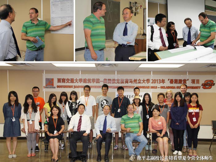 本次游学夏令营经过精心筹备,在西南交通大学和俄克拉荷马州立大学相关院系、部门的共同努力下,取得了圆满成功。作为双方合作组织的第二次赴美游学夏令营项目,学院领导高度重视,安排专人多次与OSU相关部门院系联系完善落实交流学习计划,美方项目具体负责人Michael Holms教授2013年3月应邀访问我校期间,双方进一步就优化课程设置和环节安排深入研究,学院还举行专题沙龙活动,有中美双方指导教师和帮助参加项目的同学面对面交流,帮助同学们提前了解项目细节和学习实践要求;团队出发当日,沈中伟院长亲自到机场为师生送行,亲切叮嘱关怀每一位同学注意安全,积极学习体验;针对暑期殿堂项目访美时间较长,设计和实践考察活动内容安排紧密、工作量大,学生团队年级专业跨度大、熟悉度相对较低的特点,栗民副书记亲自带队,亲切关心同学们的学习生活和身体健康,做好同学们的思想工作,并针对各种突发变化,随时与对方学校和相关部门协调沟通,保证了游学项目顺利完成。参加夏令营的全体同学,自觉服从团队安排,不畏疲劳,谦虚认真,高质量地完成了交流学习项目,充分体现了交大学生严谨勤奋的优良传统,展示了建筑学子的创意和风采。同学们29天的美国之旅,开拓了眼界,锻炼和展示了专业技能,提高了国际交流能力,更与参与项目的美国师生结下了宝贵的友谊。