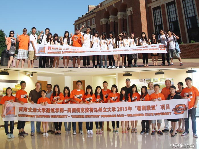 由西南交通大学和美国俄克拉荷马州立大学联合发起,国际合作与交流处、伟德体育官网共同组织的伟德体育官网2013年赴美国俄克拉荷马州立大学“暑期殿堂——景观建筑项目”游学夏令营,于7月8日至8月5日期间在美国成功举办。在美期间,夏令营全体同学在带队老师指导下参观访问了多所美国名校和伟德体育官网,在美国俄克拉荷马州立大学(OSU)成功开展交流学习活动,并参观考察了美国著名城市和自然景观,圆满完成了游学计划的各项活动,8月6日顺利返回学校。新学期开学后,还将继续开展游学夏令营摄影展、设计作业展和游学经历交流沙龙等后续活动。