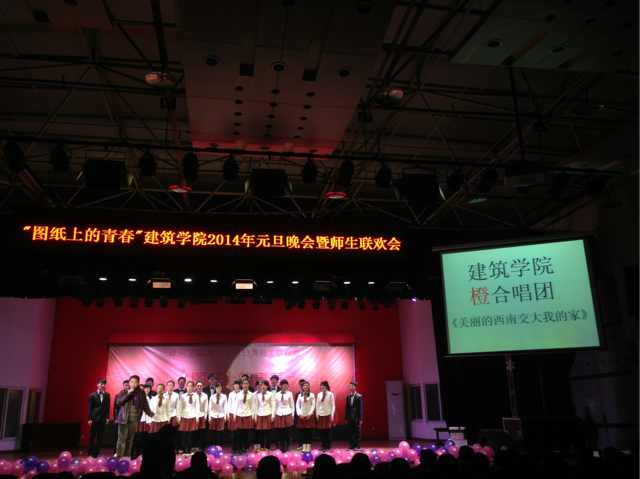 晚会结束了,但雷鸣般的呼声似乎仍飘荡在会场的上方久久不肯散去。本次师生联欢会经过两个多月的筹备工作,组织了多次排练、精心选拔和彩排。在学院沈中伟院长、王志杰书记、栗民副书记的亲切关怀下,在辅导员老师和学生会以及学校、学院相关部门的有序组织和高效协作下,圆满落幕。若有人感慨我们熬夜通宵作图而蹉跎了青春,我们可以骄傲的说,图纸上描绘着的不仅仅是那些建筑、配景,更是我们五彩绚烂的青春!