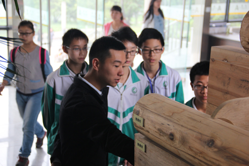 5月9日下午14:00,犀浦外国语学校老师带领五十余名学生来到伟德体育官网参观首届建造节作品,学院辅导员方翰老师接待了来访师生。本次参观由学院志愿者为大家一一讲解建造节作品。