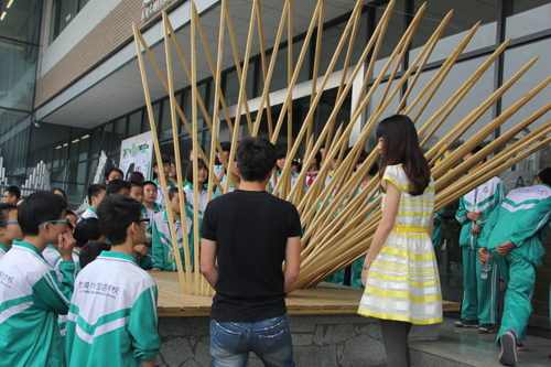参观过程中,辅导员方翰老师介绍了伟德体育官网专业特色、本次建造节的重要意义及成果,让同学们领略到建筑学子的动人风采。我院的志愿者为参观师生详细介绍了各个参赛作品,包括方案设计、设计理念、材料选取、施工过程等。同时也为他们普及了相关的建筑知识,参观师生也兴趣盎然,不断在作品间探索穿行,感受充满创意的文化艺术氛围。