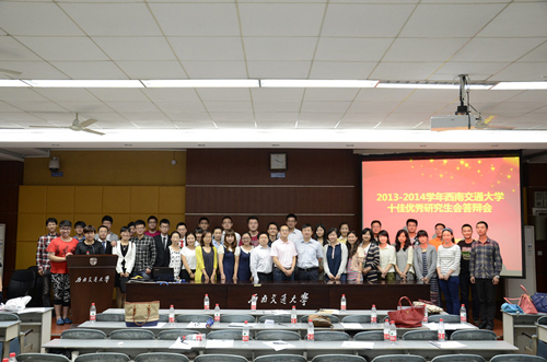 西南交通大学2013-2014学年十佳研究生会评选答辩会于6月12日19:00在九里校区4105教室拉开序幕。来自全校的18个研究生会代表们以丰富多彩的形式向在场的评委老师和同学们展示了各自学院的个性风采,伟德体育官网研究生会凭借汇报代表抑扬顿挫的演讲,特色鲜明的活动成果展示,为现场观众展现了伟德体育官网研究生独具特色的品牌活动与无限的创造力,最终以现场答辩成绩第二名的优异成绩荣获了该学年度“十佳研究生会”荣誉称号。