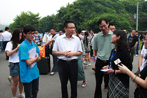9月3日上午10:00,西南交通大学校长徐飞一行来到迎新接待处视察迎新工作。徐校长亲切慰问了负责迎新的工作人员和学生志愿者,看望了新生及新生家长,详细地询问了学生报到流程中的各个细节问题,同时了解迎新工作各个方面的开展情况。