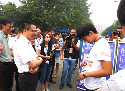 伟德体育官网党委栗民副书记向校长汇报了伟德体育官网迎新工作开展情况并详细介绍了在今年迎新工作中推出的亮点及特色服务,包括:本次新生家长会由学院沈中伟院长、王志杰书记分别担任主讲;“建筑阶梯---Architecture Ladder”logo所代表的意义,九宫格中的A是“Architecture”的首字母,像型为阶梯型,象征着一步一个阶梯向前迈进、勇攀高峰、实现人生理想;学院建立了2014级新生QQ群和2014级新生家长QQ群,两个群在上学期就已经建立,新生录取完成之后就开始邀请新生及新生家长加入,使新生及家长提前了解新生报到事项和学校、学院概况,使学院第一时间了解新生情况等,为迎新工作的开展带来了极大的便利;学院充分利用学院“建筑媒体”微信公众平台、学生组织微博、微信、人人网等新型网络平台发布信息通知,使新生第一时间了解新生报到程序及入学活动安排等相关信息。在对学院为每个新生班级配备一名高年级学生担任班主任,协助辅导员做好迎新期间及本学期的各项工作,使新生们更快的了解学校、更快的融入大学生活,真正发挥了学生骨干的先进模范作用,真正起到了“一帮一”、“传帮带”作用。学院青年志愿者协会早在7月份就为本次迎新工作做了统一的文化衫,左上角的英文是不同时期的建筑大师的名字,右上角是“Architecture”创意设计,左下角的英文分别是奉献、效率、爱心、幸福等,诠释了奉献爱心、热心于志愿服务的精神。新生班主任亲自为新生手绘的贴心名片和交大地图及准备的小礼物也都体现了学院对新生的关爱。学院在落实“新生导航计划”方面,对“20+X”具体项目中的“X”进行了具体的计划和安排,比如开展新生唱校歌、团学组织教育、“阳光心态教育”专题等。最后,提及今年迎新最大变化,栗民副书记表示今年学校的迎新氛围很浓厚而且很正规,给人以积极向上的风气。