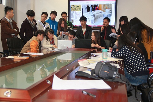 在意大利罗马建筑学会设计师Leopoldo Russo Ceccotti、Laura Colazza来访伟德体育官网期间,Leopoldo Russo Ceccotti和Laura Colazza还对暑期参加意大利项目的学生的设计作品进行指导,同学之间相互交流,同时将会把优秀作品推选到国际大学生设计作品大赛中。