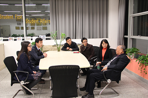 讲座结束之后,学院辅导员有幸请到鲍教授来到伟德体育官网学生工作办公室向鲍老师请教关于当代大学生如何培养及价值观如何建立的问题,由于鲍老师在1950年代毕业初期也曾担任过班主任(即辅导员身份)工作,不仅对建筑教育有丰富的经验且对学生管理和培养同样有丰富的见解。鲍老师讲到:作为辅导员要充分的引领学生正确的价值取向,教育正确的思想观念、坚定理想信念、牢记党的宗旨,充分相信国家的制度和坚定跟党走中国特色社会主义道路的决心。只有保证了思想的高度统一才能安心努力的学习以至为祖国为民族奉献自己的知识和力量。