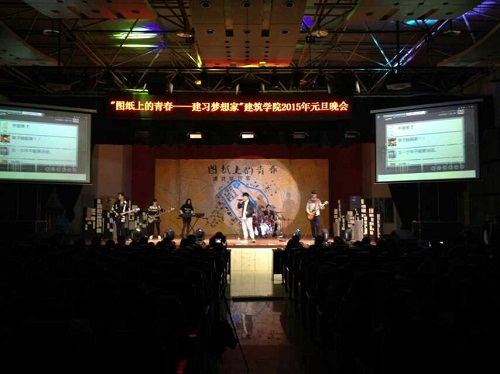 以图纸描绘青春之绚丽,以画笔勾勒心中之梦想,以梦为马,筑梦天下。伴随着2015年逐渐来临的脚步,伟德体育官网2015年元旦晚会暨师生联欢会“图纸上的青春”于2014年12月30日晚19:30在一食堂三楼大学生活动中心成功举办。伟德体育官网沈中伟院长、院党委王志杰书记、栗民副书记、崔珩副院长、李异副院长,各系主任、班导师、专业老师、全体辅导员、及兄弟院系师生参加了本次晚会。