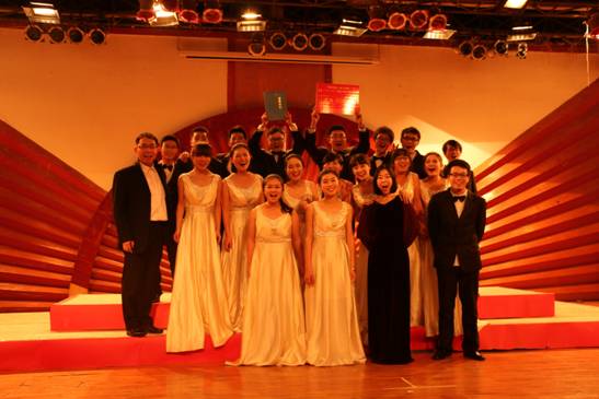 转眼间半年过去了,合唱团也在不断革新,新老更替,大三的学姐学长将他们组织协调的重任交付给现在大二的这一届,同时合唱团也注入了新鲜血液,许多大一的学弟学妹加入到了我们的队伍中来,让合唱团这个“家庭”更加有了“传承”的意味。除此之外,校办的张丹妮老师担任了我们的钢琴伴奏。在三位老师的共同带领下,合唱团跨入了一个新阶段,在刚刚过去的世界华人建筑师大会(WACA)上,我团交出了满意的答卷,一曲《乘着歌声的翅膀》让沉闷严肃的会场立刻变得轻松欢快起来,许多在座的建筑界人士都沉浸在悠扬的歌声中,纷纷拿出相机记录这美妙的一刻。这次成功的演出不但让大家都信心大增,还增进了团员之间的感情,同时也让每个人懂得了一个朴素的道理:只要坚持总会有收获。