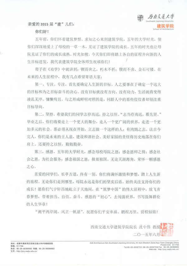 沈中伟院长寄语