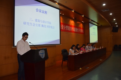 研究生会主席魏茂同学作为高年级研究生代表发言,从自己的学习经历、社会实践、生活阅历与新生做了分享。