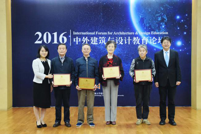 同时,为了更好地感谢我院老一辈领导、教师对学院发展做出的突出贡献,在启动仪式后,栗民书记宣读学院对陈大乾、徐伯初、张先进、钱宜菊、徐福娥五名退休老领导颁发“建筑与设计学院终身荣誉奖”的表彰决议。沈中伟院长为五位获奖者颁发奖牌,并表示衷心地感谢与祝贺,同时也希望其他教师以他们为榜样,怀揣热情,投身教育事业。