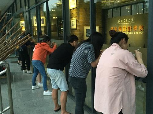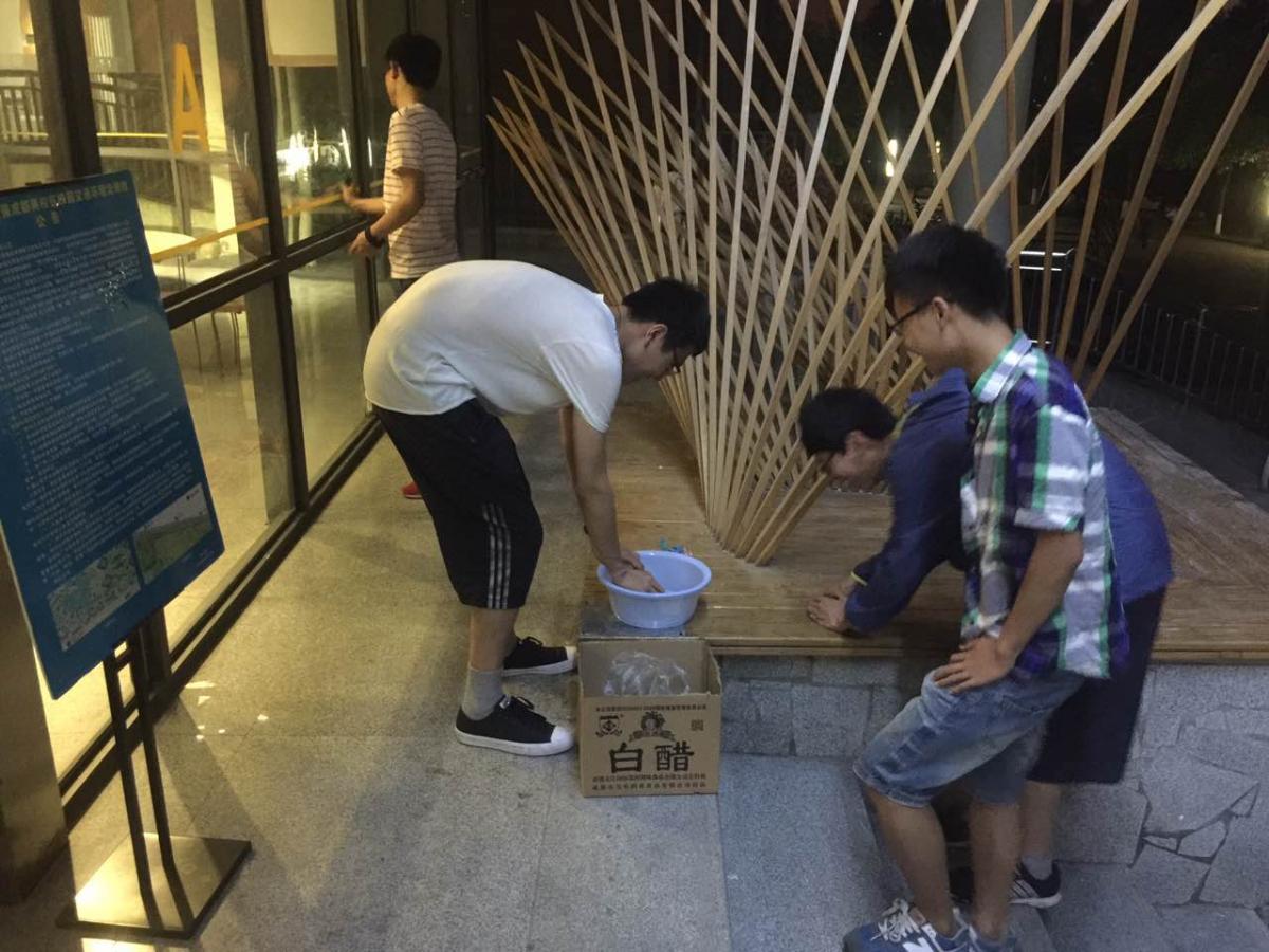 校庆前,学院开展了教学楼教学环境改善和学院文化建设工作。晚上7时,学院党员服务队成员、党员及党员发展对象约10余名同学在学院党委的倡议下来到建筑馆大厅,主动向负责老师领取任务,按照任务分工,很快便投入到工作中。当晚9:30,建筑馆参加志愿服务的同学达到30余名。一名党员这样说:“在看到倡议书之后,本想早点过来参加志愿服务工作,但由于晚上有选修课,只好等下课后赶紧过来。”而另外一名党员发展对象表示:近期刚刚上完党课,党课培训课程中有一个实践环节,现在就是我们实践的机会。2012级建筑类党支部书记缪应璐表示:校庆即将到来,在校庆之前把学院环境改善好、营造浓厚的文化氛围使我们每一个伟德体育官网学生的责任,特别是作为一名党员更要走在前面;同时近期正在开展“两学一做”学习教育,我们不仅要学好,更要做好,将学习成果贯彻到实际行动中,做一名合格的党员。