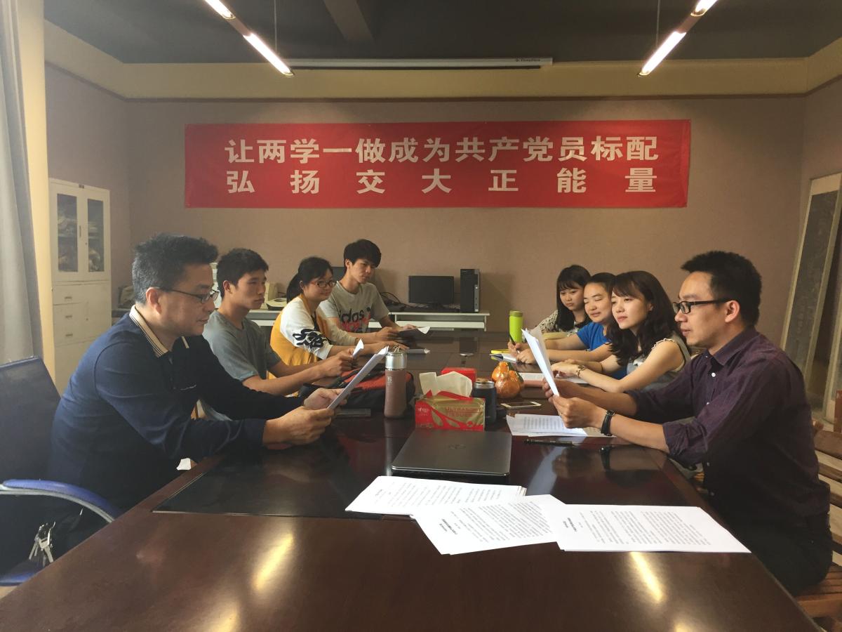 刚刚过完交大120年华诞,建筑与设计学院美术学系教师党支部就紧接着召开了“两学一做”学习教育。支部的核心理念是“让‘两学一做’成为共产党员的标配,弘扬交大正能量”。因此,在学习过程中我们扩大了学习人员范围,将系里的研究生党员也纳入支部学习交流范围。