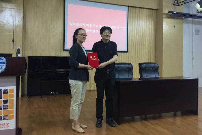 沈中伟院长为华颖教授颁发西南交通大学兼职教授聘书