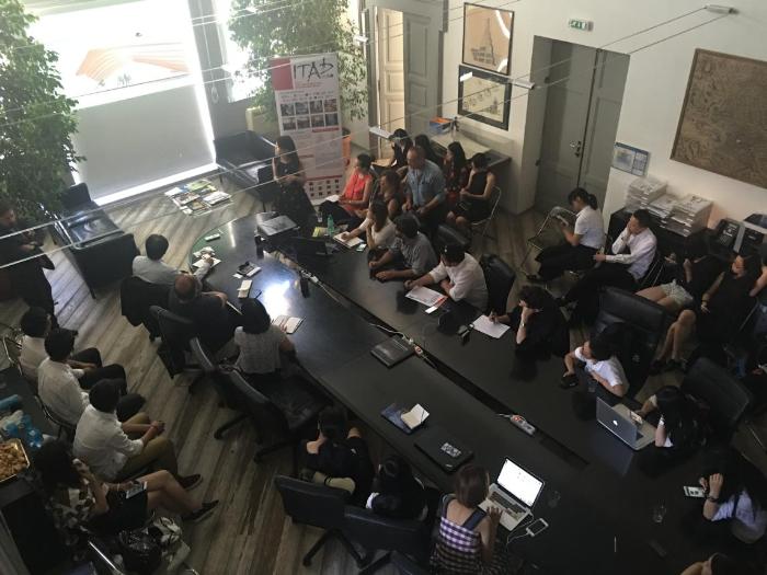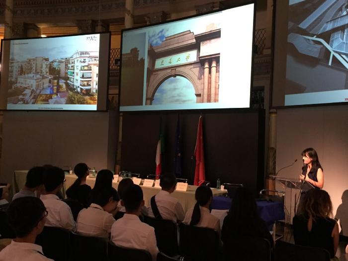 7月25日,项目开幕式在罗马建筑学会举行。西南交通大学建筑与设计学院党委栗民书记、罗马建筑学会主席Alessandro Ridolfi先生、中国驻意大利使馆科技参赞秘书Yin Shengxin先生、长期从事中国与意大利项目实践合作的建筑师Cristiana Pacchiarotti、ITAD项目组负责人Bendetta教授及全体导师出席了本次开幕式。罗马建筑学会主席Alessandro Ridolfi先生对参加本次暑期学校项目的师生表示热烈的欢迎,简要介绍了本次暑期学校的基本情况。“ITAD”项目负责人Bendetta教授介绍了ITAD项目发展历程及本次项目的计划安排。我院2013级建筑学专业的刘博文同学作为学生代表发言,她以多媒体动画的形式向在座师生展示了我校师生风采。