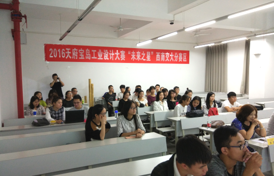 第五届天府宝岛未来之星工业设计大赛西南交通大学赛区,于2016年9月27日下午在建筑与设计学院顺利进行。大赛是由天府宝岛工业设计大赛组委会及省工业设计协会主办,西南交通大学建筑与设计学院工业系承办。来自西南交通大学、川音美术学院、西南石油学院、西华大学、四川师范大学、成都纺织高专、四川职业技术学院等省内七所院校的师生参与了本次活动,在经过预选作品中评委老师们认真的评审,以投票形式选出前5名参加决赛。本次大赛共有西南交通大学、四川大学等省内18所院校以及部分台湾高校参赛,将产生20名“未来之星”设计奖。