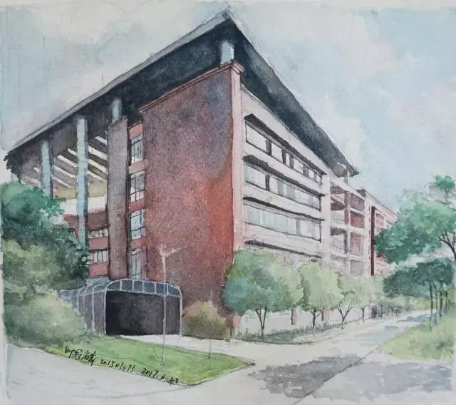 “水彩实习”这门课程是西南交大建筑与设计学院建筑学、城市规划、风景园林专业大二暑期的实习课程,在经过了半学期的课堂写生学习后,大家逐渐过渡到优美的户外风景写生中来。我国的建筑学科教育体系,也是参照西方教育体系设置的,50年代以来的建筑设计类专业,都必须系统地学习绘画,素描和水彩画是必修科目,有些学院甚至把美术作为考核学生是否适合学习建筑设计的前提。著名建筑大师杨廷宝、梁思成、齐康,无一不是技法娴熟的水彩画家。当然,作为建筑师、规划师,扎实的美学功底是成为出色设计师必不可少的先决条件,它包含建筑寓意、构图、形体、对比、色彩、空间等因素。