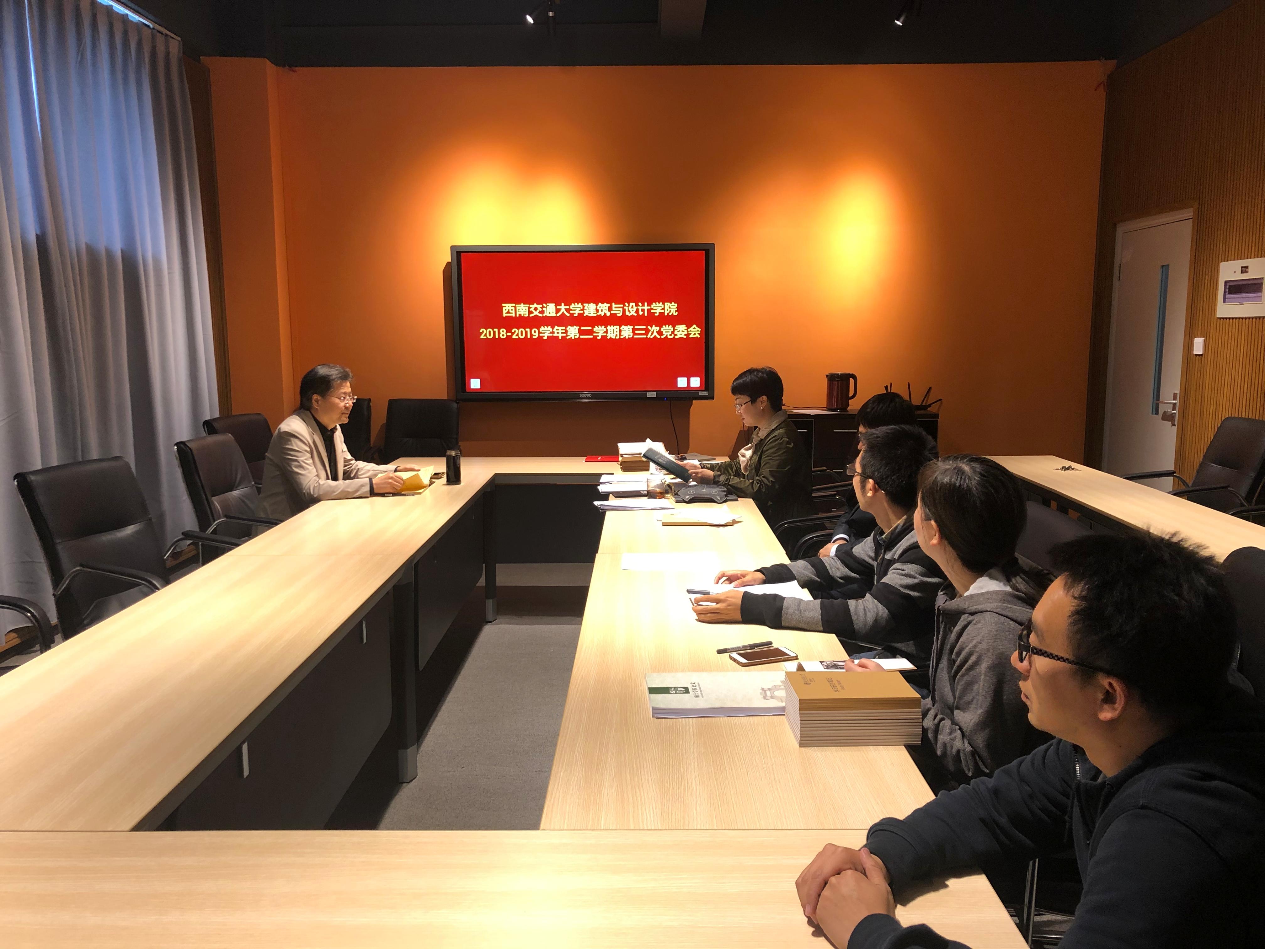 2019年5月9日,建筑与设计学院党委召开了本年度第三次党委会暨中心组学习,对习近平总书记在纪念五四运动100周年大会上的重要讲话内容以及《中共教育部党组关于教育系统认真学习贯彻习近平总书记在纪念五四运动100周年大会上重要讲话精神的通知》进行专题学习,同时学习了《教育系统违纪违法案件警示录》、《西南交通大学教师师德失范行为处理办法(试行)》。全体党委委员、中心组成员参加了本次会议,会议由党委书记沈中伟同志主持。