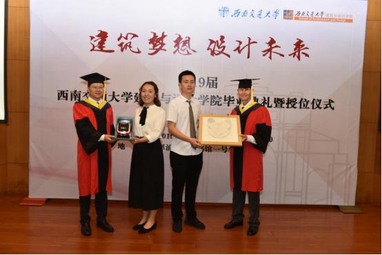 即将毕业的毕业生代表也向辛勤栽培自己的学院表达感谢和不舍,并赠送作品,由党委书记沈中伟,院长Ajacob Odgaard代表学院接受作品,表示欣慰和祝福。院长助理刘春尧为代表们颁发优秀毕业设计收藏证书,并合影留念。