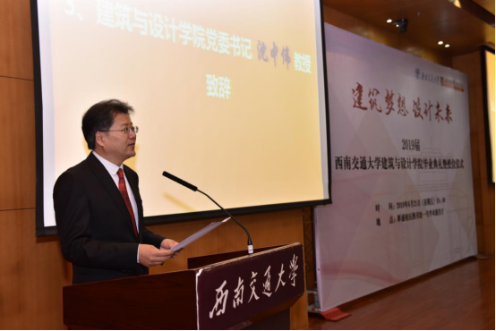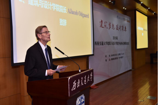 2019年6月21日上午10点,西南交通大学建筑与设计学院毕业典礼于犀浦校区图书馆一号学术报告厅顺利举行。我院党委书记沈中伟,院长Ajacob Odgaard,副院长崔叙、杨青娟等领导、老师与20名毕业研究生代表及全体本科毕业生参加了本次典礼。典礼由我院党委副书记刘一杰主持召开。