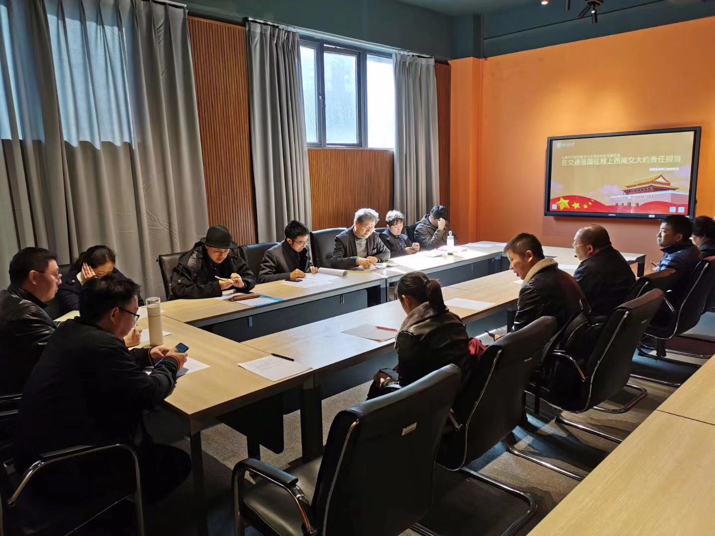 一、付飞同志向全体与会党员通告了西南交通大学校党委关于在“不忘初心、牢记使命”主题教育中进一步开展专题学习教育活动的通知,将近期要进行的“学习宣传党的十九届四中全会精神”;参观“伟大历程、辉煌成就——庆祝中华人民共和国成立70周年大型成就展”网上展馆;认真收看《榜样4》专题节目活动传达布置下去,希望全体党员同志自觉认真学习。