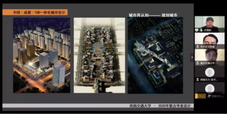 随后西南交通大学史劲松老师从城市问题和城市理想切入,以PPT、视频、CAD等多样展现形式对此次联合毕设的题目进行了解读,很大程度上弥补了学生无法前往地段现场的缺憾。史老师还讲解了联合教学的方式方法与现有成果,同时对同学们开展毕业设计提出了几点要求并强调了时间安排。