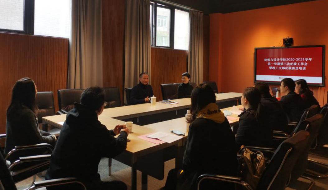2020年11月18日上午11:30,建筑与设计学院教工党支部纪检委员培训会在犀浦校区X8238学院第一会议室举行,学院党委书记吴晓雄应邀出席会议,学院纪委书记刘一杰主持会议,各教工党支部纪检委员参会。
