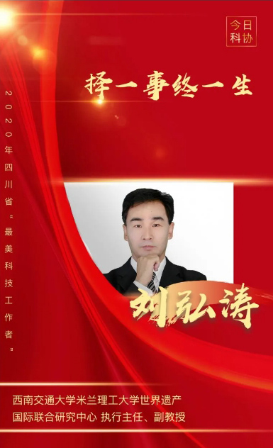 近日,四川省“最美科技工作者”评选工作中,西南交通大学建筑与设计学院刘弘涛老师获得2020年四川省“最美科技工作者”(全省共10人)称号。