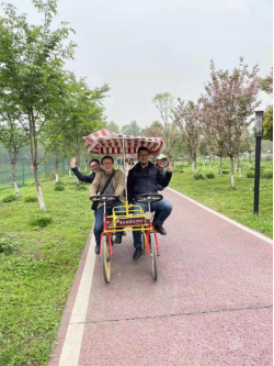 中午,大家集合午餐。在美味佳肴中,大家互相交流情感。品尝完美味的食物后,我院教职工们三五成群结伴出游,或选择进行自行车骑行,或选择散步漫游,伴着明媚的阳光,沿着绿道徐徐前进,在缓慢前行的旅程里,静静地欣赏四周的美景,感受视觉的变幻。户外幽静的村庄,朴实的农民,呈现出一派亲近自然、花海融春,山水相依的生态意境。大家在享受优美自然景色的同时,也不忘留影纪念,增进彼此的情感。