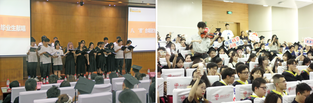 接下来,橙合唱团的同学们为毕业生献歌,乐队合奏《如愿》让人感动,一首《追寻》引发全场共鸣,现场气氛温馨。最后,2022年伟德体育官网毕业典礼在齐声合唱的西南交通大学校歌《文轨车书郅大同》中画下句点,仪式圆满礼成。