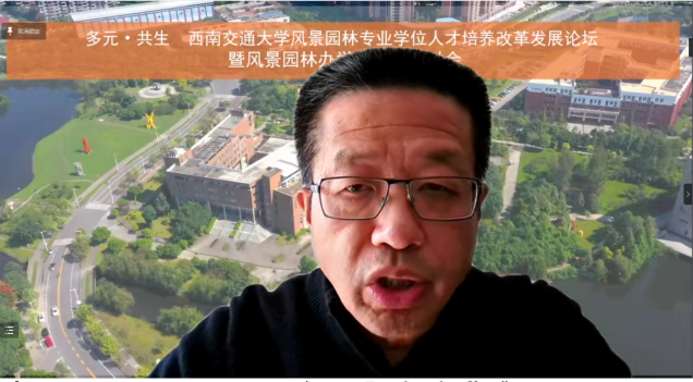 陈其兵教授通过介绍四川农业大学风景园林专业博士的培养模式,阐明其团队多年来坚持以规划设计实践为突破口,辅助专业博士的培养,再反哺科研的发展模式。提出应通过申请专利与新品种研发,让社会接受并承认本专业培养出的专业博士质量,再借助国际交流合作,焕发专业生机。对专业未来发展的畅想则是风景园林专业发展将与健康和医学联系更加紧密。