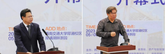 开幕式上西南交通大学姚发明副校长致辞代表学校欢迎各位嘉宾及两岸十校参赛师生的到来,感谢各位专家评审、各位师生的参与以及对本次“建造节”的大力支持,并预祝2023年“天府建造节”取得圆满成功,愿各兄弟院校参赛学子们取得好成绩。